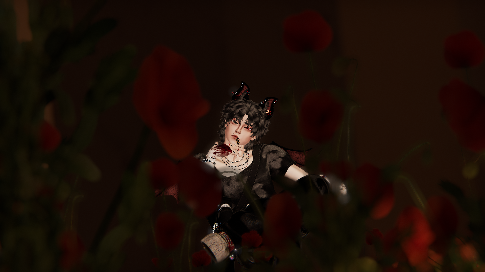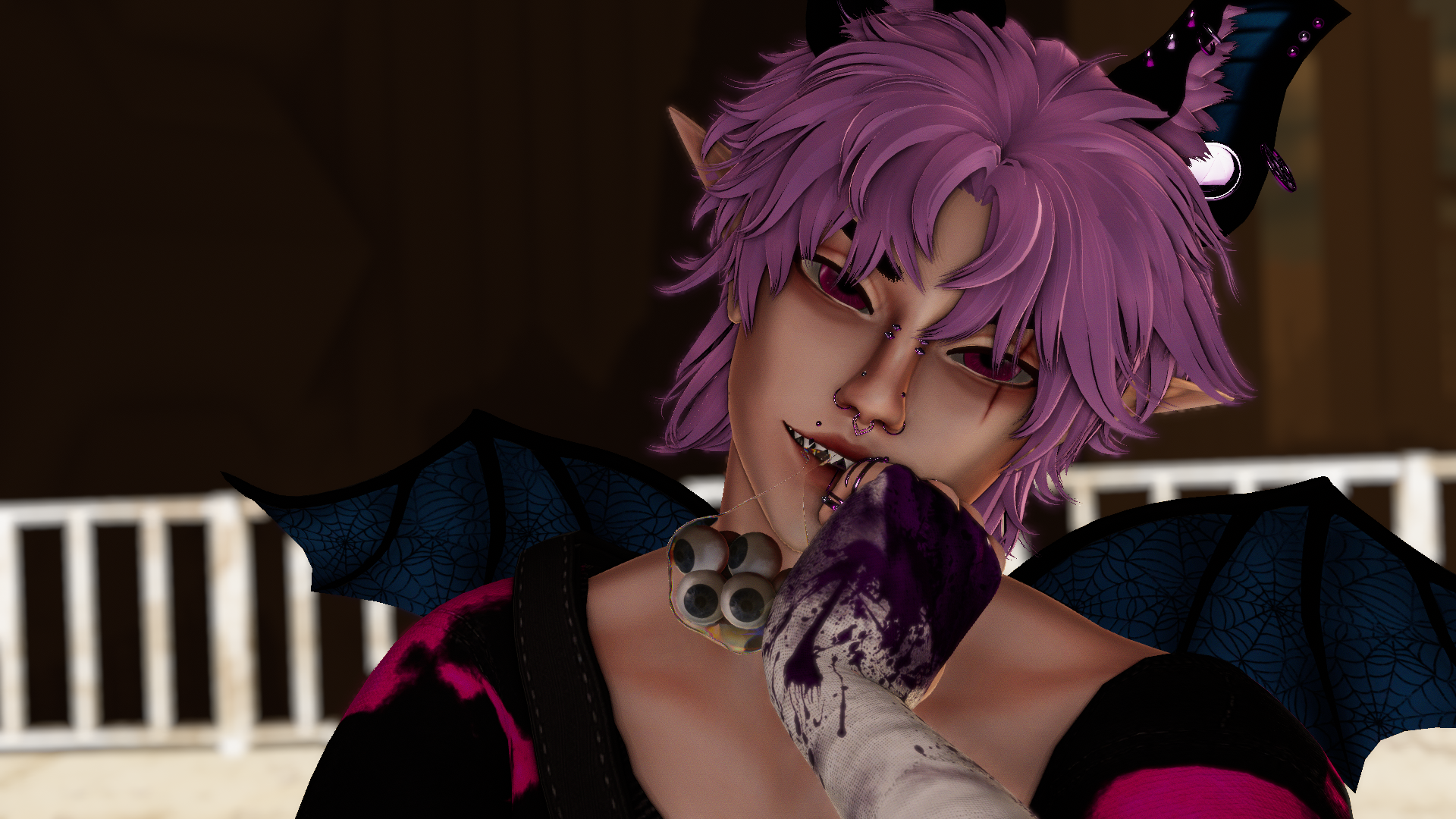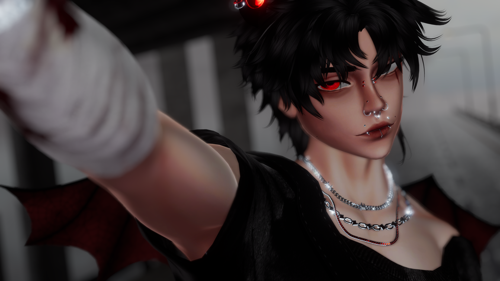 Accessories: Arm/Leg Warmers & Ring Set (gelw0) , Til Death Ring, Piercings, Arm Wraps (Solea3D) , Bat Ring , Necklaces, Cubans, Razor Blade, & Designer Bracelet , Buckled Bracelet (Kokori) , Mouth Goodies (Mamachi), Satchel (Ruski)